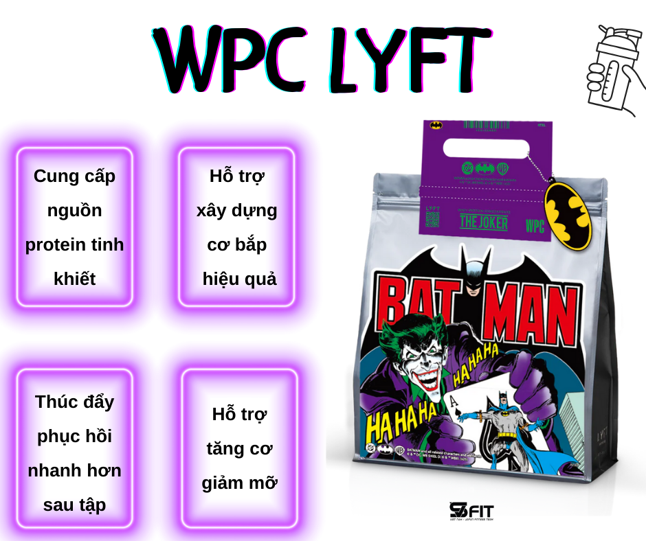 Whey protein nổi bật với thiết kế Batman và Joker.